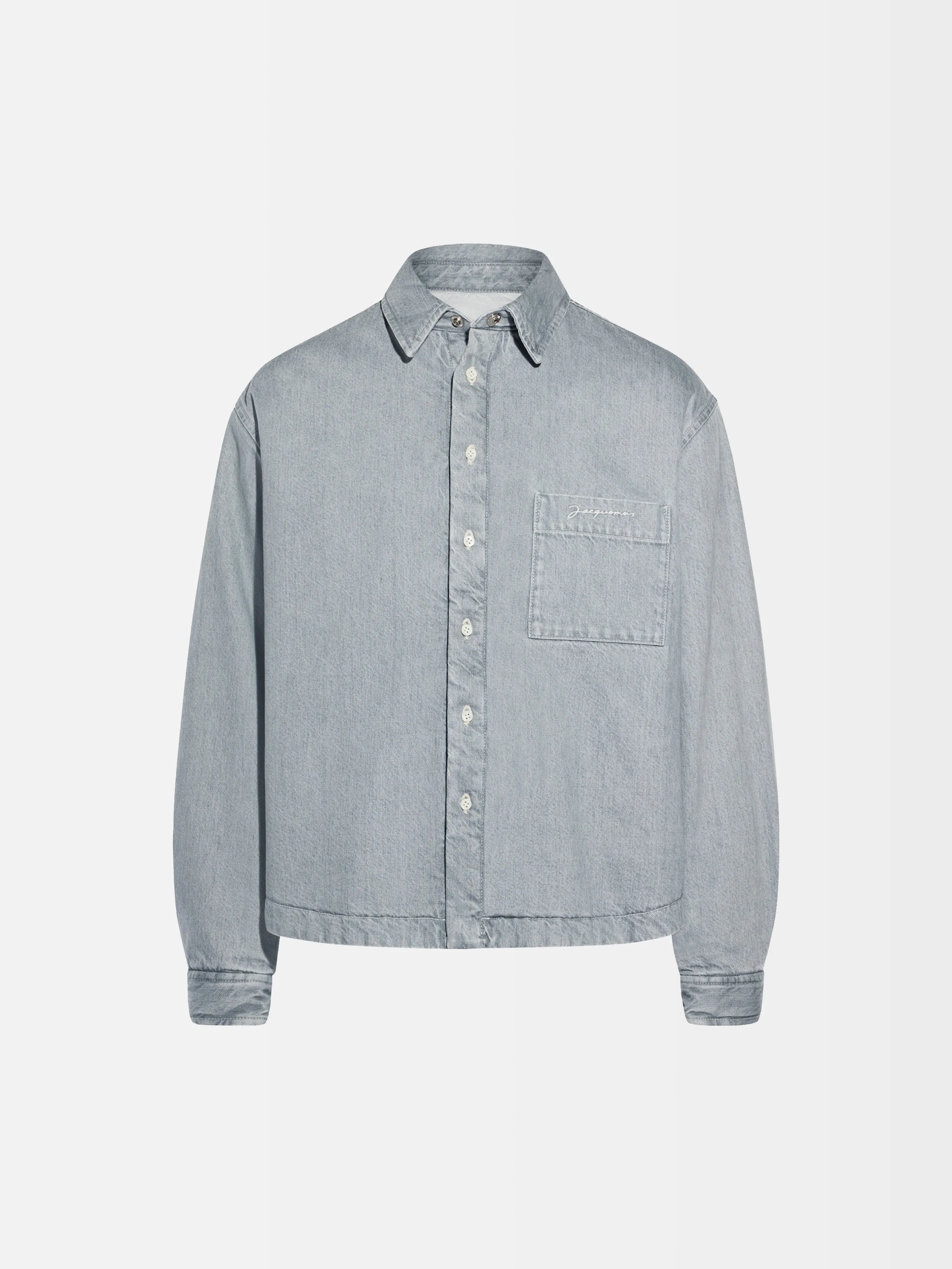 LA CASA Puffed denim over-shirt - Boxy fit - Washed grey denim - Pointed collar - Button placket with mother-of-pearl buttons - Chest patch pocket with embroidered logo - Square buttoned cuffs - Contrast stitching - Fully wadded and lined The model is 188cm and wears a size 48 100% Cotton Made in Portugal Ref. 245DE034-1654-95A