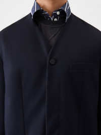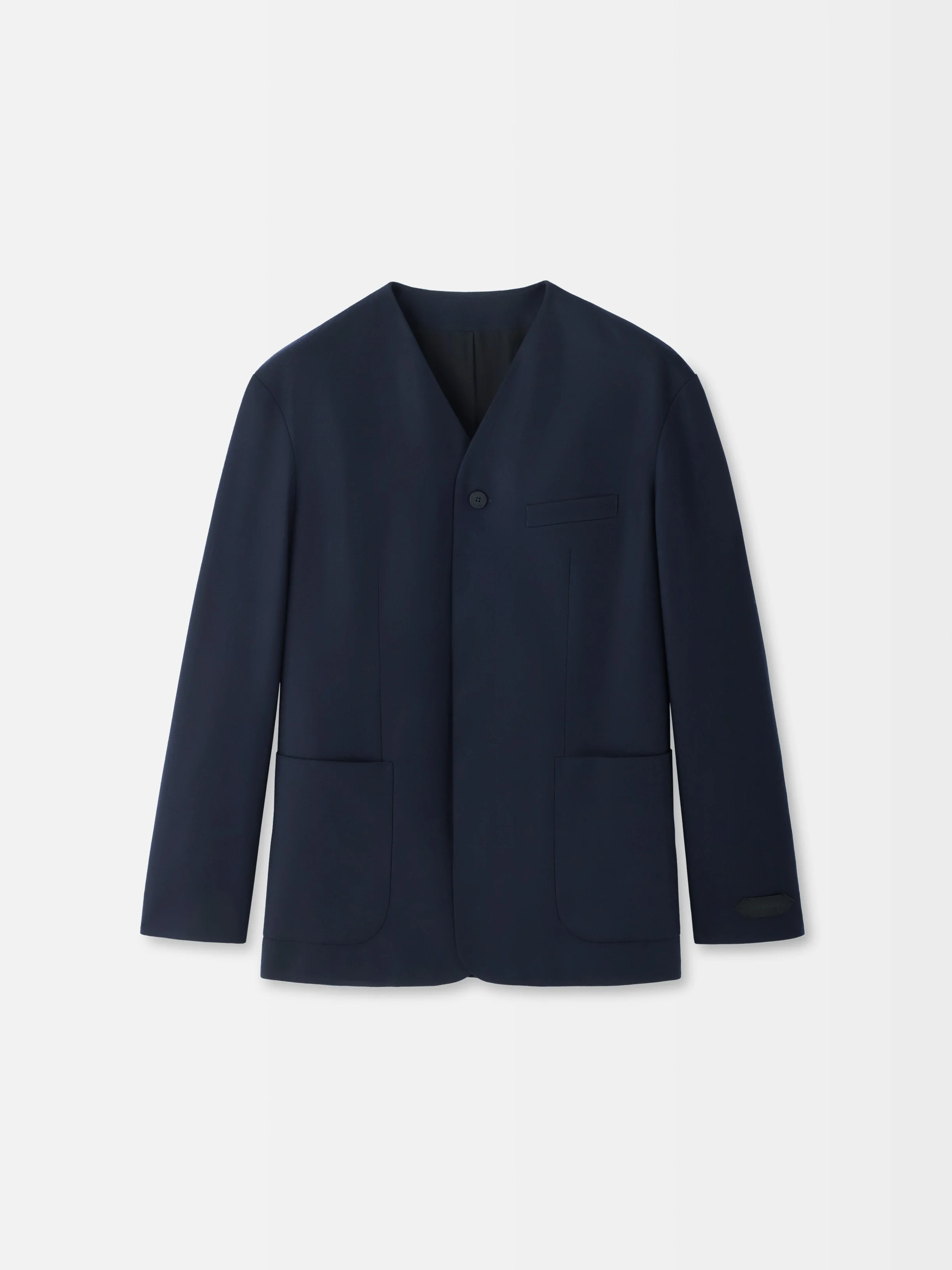 Collarless blazer - Straight fit with structured shoulders - Tailoring wool - Collarless neckline - Hidden button placket - Welt chest pocket - Side patch pockets - Interior welt pocket - Embroidered logo patch on the sleeve - Fully lined The model is 189cm and wears a size 48 100% Virgin Wool / Lining: 52% Viscose - 48% Cotton Made in France Ref. JAM00082AW00631380