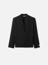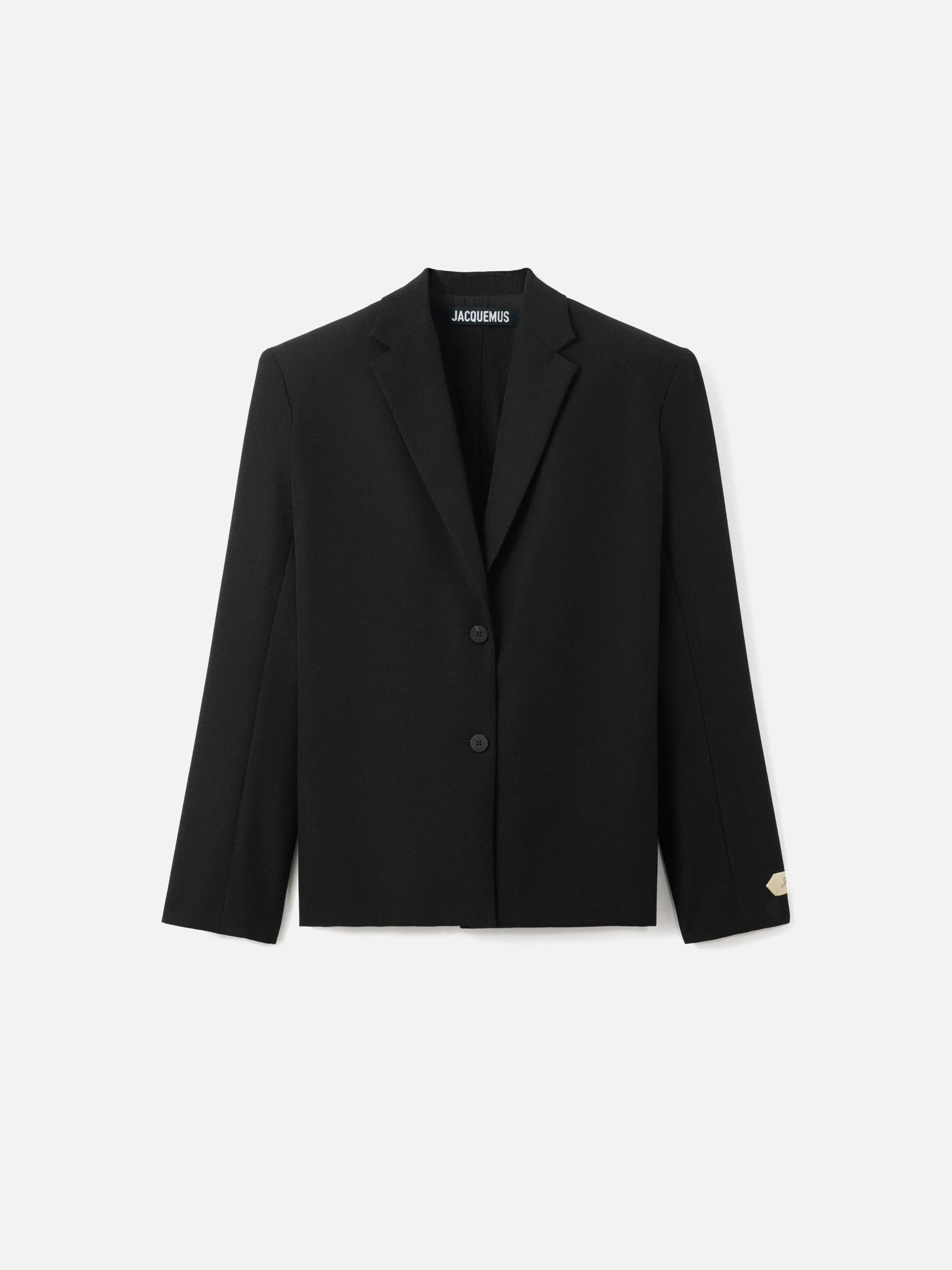Square blazer - Boxy fit - Lightweight tailoring wool - Notched lapel - Padded square shoulders - Embroidered patch on the lower left sleeve - Buttoned sleeves - Fully lined - Horn buttons The model is 180cm and wears a size 36 100% Virgin Wool / Lining: 52% Viscose - 48% Cotton Made in Romania Ref. JAW00120BW00637990