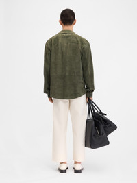 Suede crocodile shirt - Oversized fit - Embossed crocodile suede - Pointed collar - Long sleeves - Square, buttoned cuffs - Back yoke - “J” locker loop - Corozo buttons - “J” locker loop The model is 185cm and wears a size 48 100% Goat leather Made in Italy Ref. 255SH119-1738-560