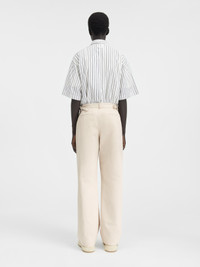 LA CASA Workwear pants - Straight fit - Mid rise - Waistband with buckled tabs - Hidden zip fly and snap fastener - Slash pockets - Back welt pockets - Topstitched details The model is 187 cm and wears a size 48 82% Cotton - 18% Linen / Lining: 97% Cotton - 3% Elastane Made in Bulgaria Ref. 246PA071-1534-150