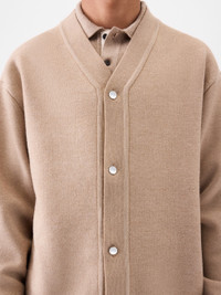 Rounded cardigan - Boxy fit with rounded shoulders - Heavy merino wool blend knit - V-neck - Ribbed collar, cuffs and hem - “J" loop in the back - Engraved horn buttons The model is 188cm and wears a size M 94% Merino Wool - 6% Polyamide Made in Portugal Ref. CDM00292CK00185015