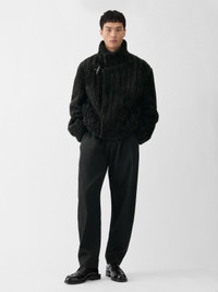 Faux fleece jacket - Oversized fit - Faux fleece - Stand collar with corozo button - Long sleeves - Rounded shoulders - Asymmetric closure with toggle and leather loop fastener - Hidden snap buttons - Side welt pockets - Jacquemus Rosemary label in the back - Fully lined The model is 188cm and wears a size 48 100% Polyester / Lining: 52% Viscose - 48% Cotton Made in Bulgaria Ref. OUM00063AW00723990