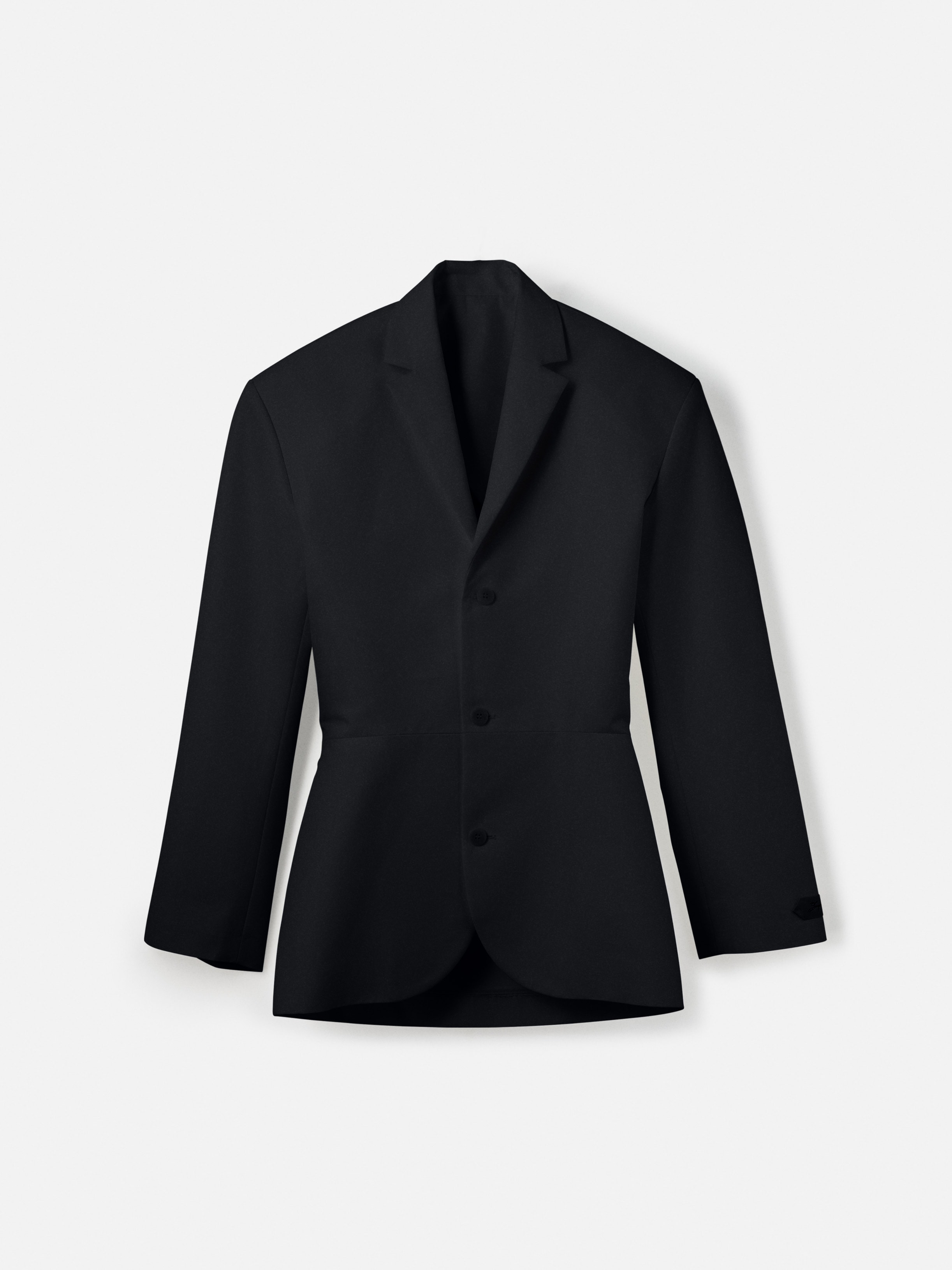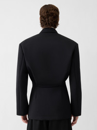 Cinched jacket - Fitted shape with structured shoulders - Compact poly-wool - Notched lapel - Waist yoke - Three horn button closure - Interior welt pockets with "J" loops - Fully lined - Rounded cinched back with box pleats The model is 190cm and wears a size 48 53% Polyester - 42% Wool - 5% Elastane / Lining: 52% Viscose - 48% Cotton Made in Bulgaria Ref. JAM00095AW00733990