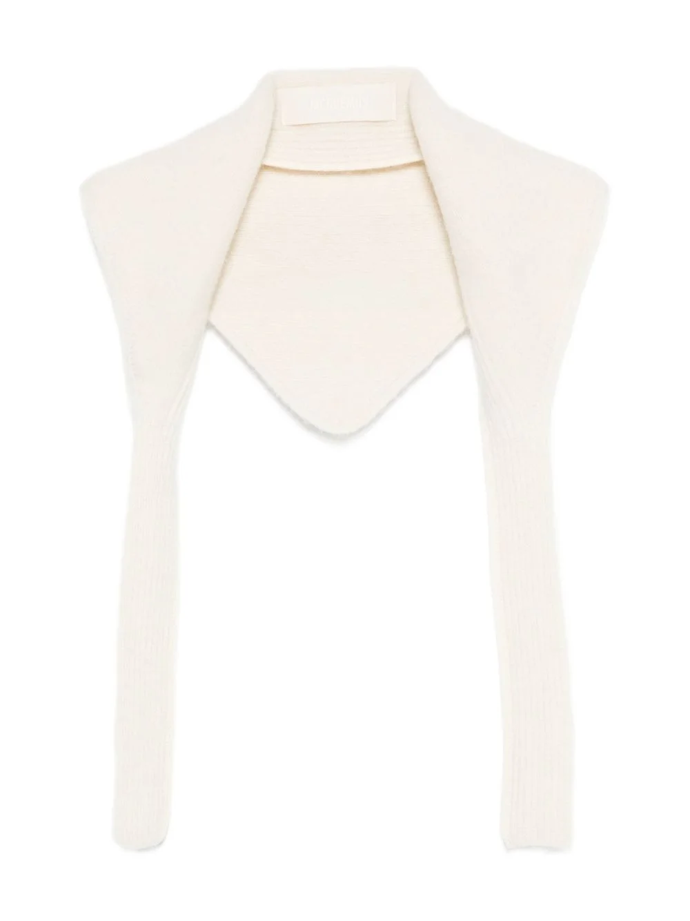 ribbed-knit collar scarf Highlights - White - Ribbed knit - Collar design - Long ends - Open front - Alpaca-wool blend Made in Italy Composition Alpaca 47%, Polyamide 33%, Wool 20% SIZE & FIT Measurement LENGTH 59.05 in(150 cm) WIDTH 16.92 in(43 cm) Washing instructions Read Manufacturer Guidelines