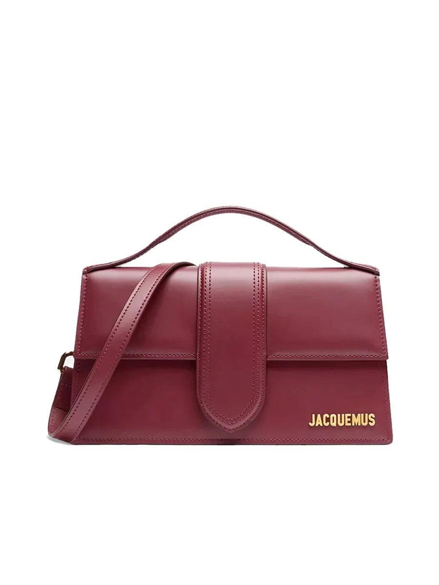 - Composition: 100% calf leather - Lining: Cotton - One internal pocket - Flap top magnetic closure - One top handle - Removable and adjustable shoulder strap - Height 13 cm - Width 6 cm - Back patch pocket - Gold-tone logo lettering - Length 23.5 cm - Colour: burgundy - Made in Italy - Product code: 213BA0023066