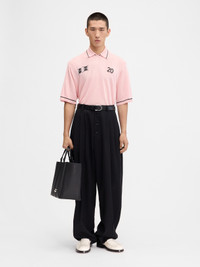 LA CROISIERE Jacquard polo shirt - Loose fit - Jacquard knit - Matt and shiny vertical stripes - Boxy elbow-length sleeves - Ribbed collar, cuffs and hem - Circle and square argyle jacquard detail - Contrast "20" embroidery on chest - Jacquard Jacquemus Club logo label on the back The model is 185cm and wears a size M 91% Viscose - 8% Polyamide - 1% Elastane Made in Romania Ref. 255KN542-2432-410