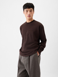Jacquard signature knit - Relaxed fit - Ribbed knit with jacquard "J" - Ribbed crew neck - Overlock detail around the collar - Long sleeves - Ribbed cuffs The model is 189cm and wears a size M 59% Cotton - 37% Linen - 4% Silk Made in Portugal Ref. SWM00612AK00263880