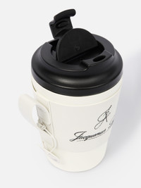 Travel mug - sold exclusively online and in our Paris store - Thermal travel mug - Hermetic lid - Embossed sleeve replicating the texture of the house's iconic label - Collector's piece - Presented in a box exclusively designed for the capsule - Exclusive model designed for our JACQUEMUS store in Paris - Wash after each use - Do not microwave - Dimensions: 8,6 cm x 14,5 cm - Contenance: 350ml 90% Stainless steel - 10% Polypropylene Made in CN Ref. LIO00019AMMA0011PM