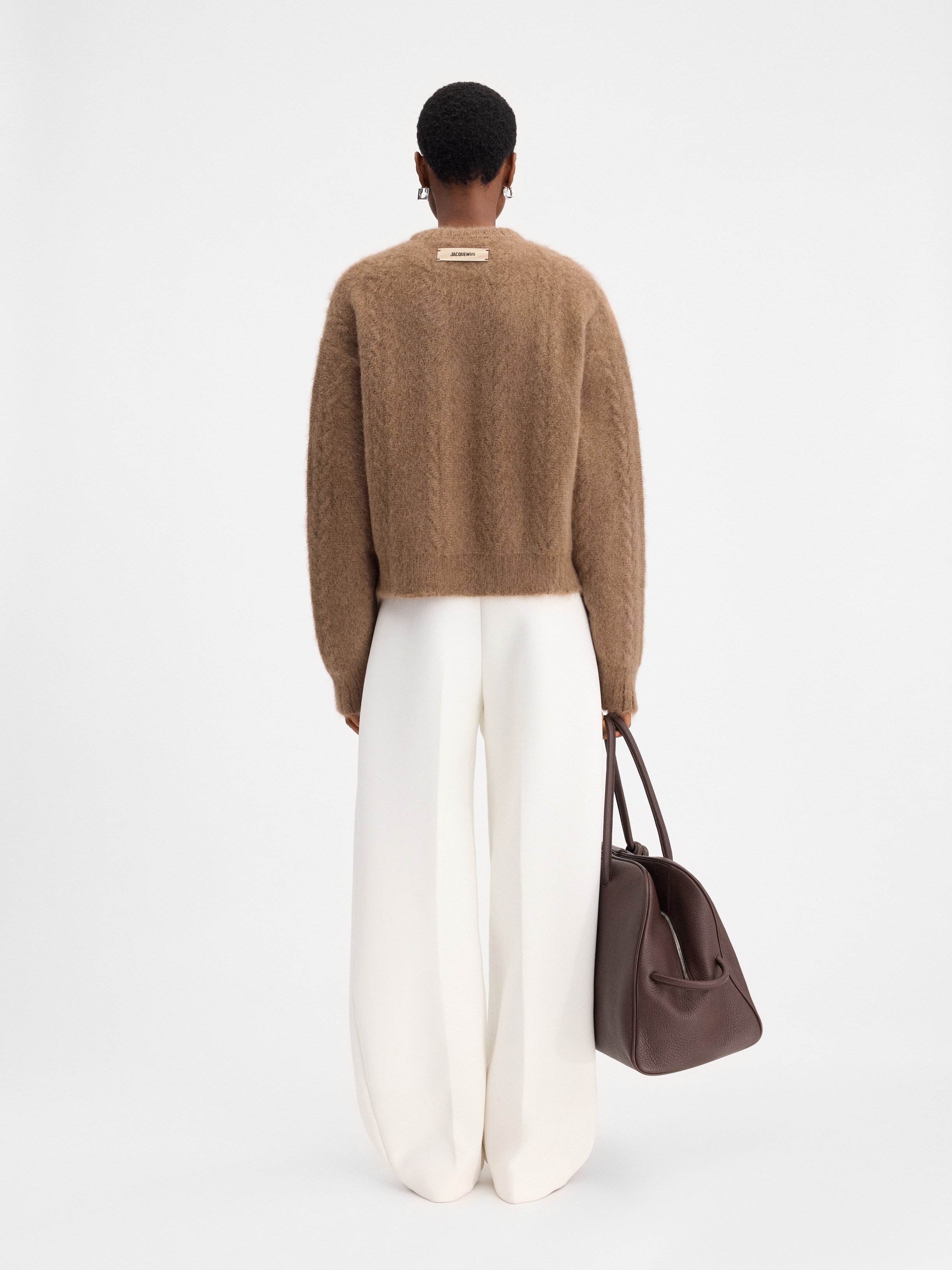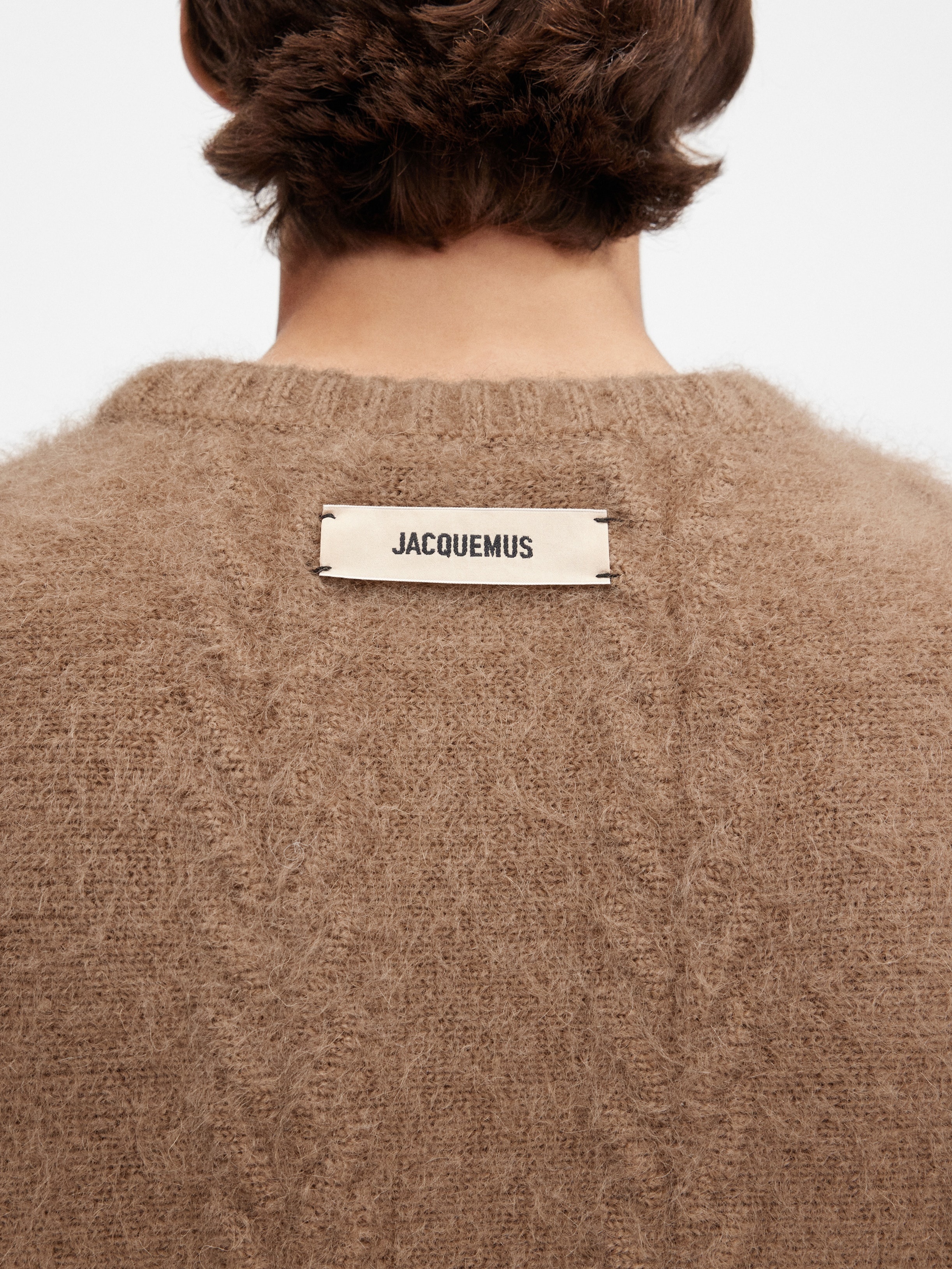 WINTER RETREAT Round-neck mohair sweater - Relaxed fit - Round neck and long sleeves - Ribbed collar, cuffs and hem - Twisted pattern - Silk JACQUEMUS label on back Men: The model is 192cm and wears a size M Women: The model is 175cm and wears a size S 81% Mohair - 17% Polyamide - 2% Elasthanne Made in Italy Ref. 246KN523-2016-830
