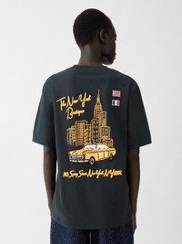 Short-sleeve logo t-shirt - exclusively sold online and in our New York boutique - Short-sleeve cotton t-shirt - Oversized fit - Ribbed collar - Embroidered JACQUEMUS logo on front - NYC Cab print on back - Boutique address embroidered on back - Satin-finish France flag on back - United States flag embroidered on back - Exclusive model designed for the JACQUEMUS boutique in New York 100% Cotton Made in Portugal Ref. TSM00589AJ000293GM