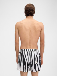 Zebra Arty print swim shorts - Fitted boxer cut - Mid-rise waist - Zebra Arty print - Drawstring waistband - Side pockets - Patch "J" pocket on back - Mesh inner lining The model is 192cm and wears a size 48 100% Polyester / Lining: 100% Polyester Made in Portugal Ref. 255SW013-2407-9CC