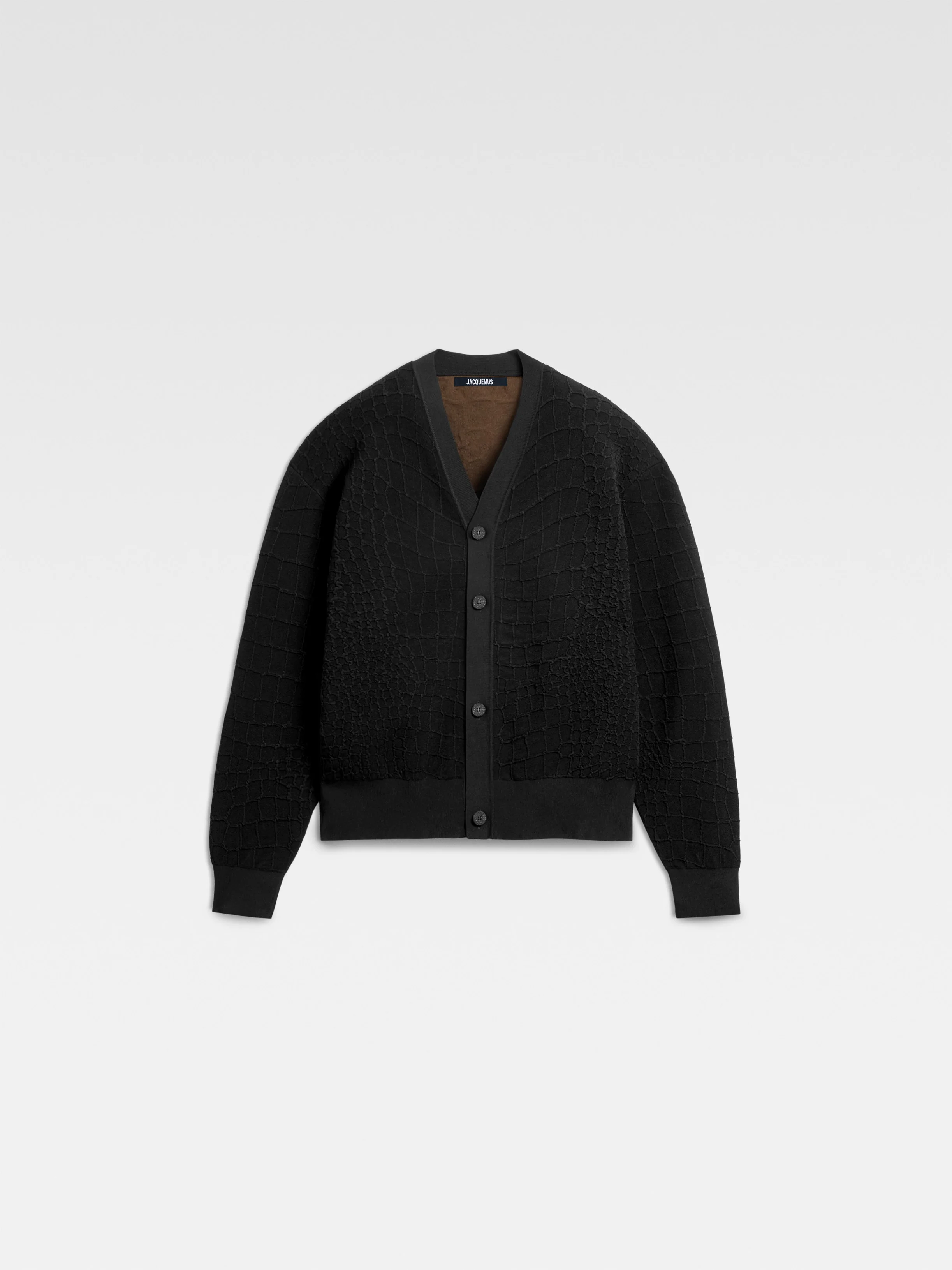 High-neck cardigan - Straight fit - Crocodile embossed stretch viscose - Integrated stand collar - Raglan sleeves - Ribbed collar, cuffs and hem - “J” locker loop The model is 190cm and wears a size M 78% Viscose - 20% Polyamide - 2% Elastane Made in Portugal Ref. 255KN536-2429-990