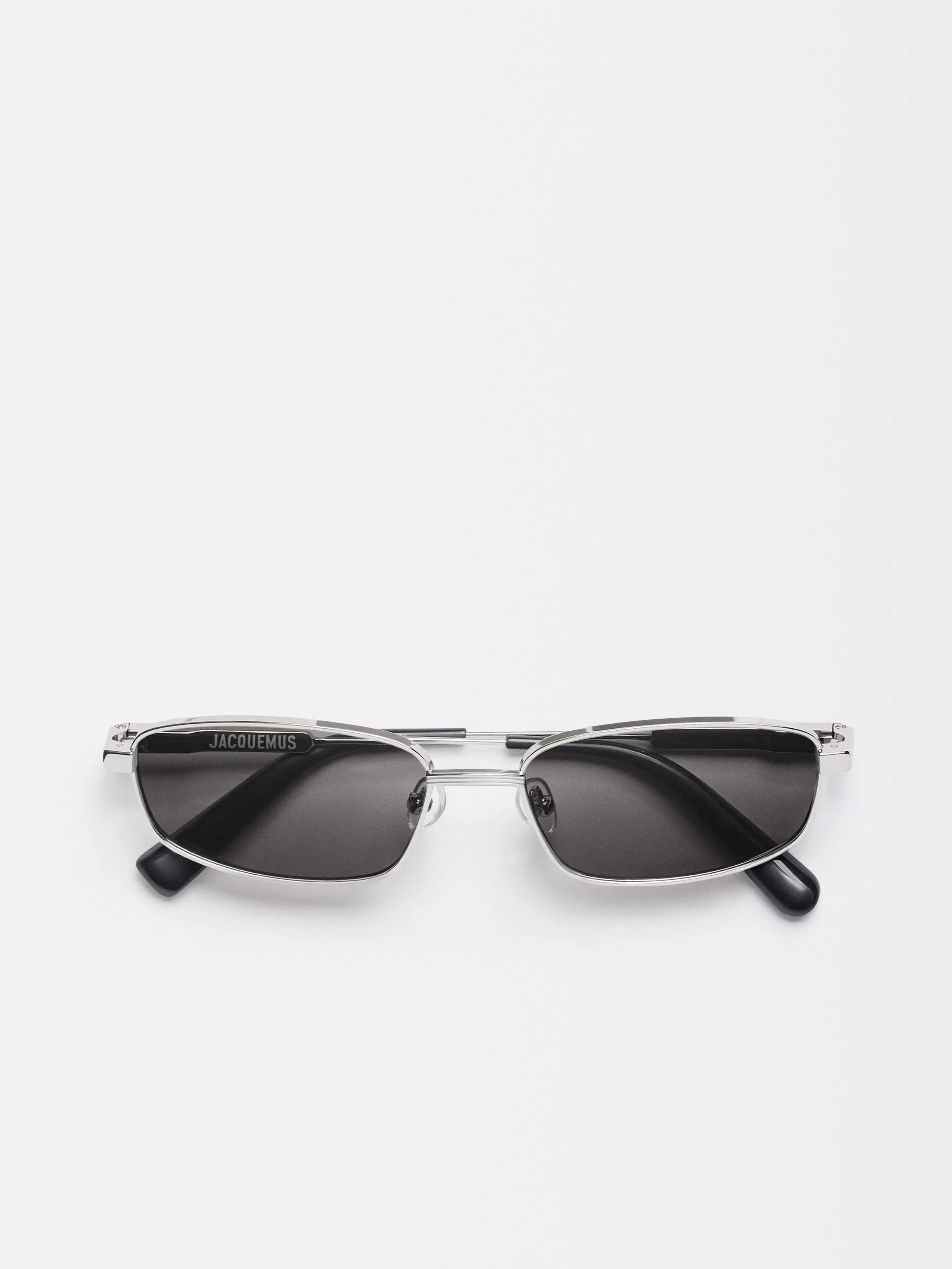 Rectangular aviator sunglasses - Metal sunglasses - Rectangular frame - Tinted lenses - UV 400 protection - Nose pads - Engraved logo on the outer temple - Engraved logo on the inside temple 100% Stainless steel Made in Japan Ref. EYU00054AOT4051980