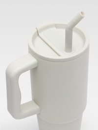 Sports bottle with handle - sold exclusively online and in our Los Angeles store - Double-walled water bottle made from recycled stainless steel - Lid and straw included - Silicone straw tip - Suitable for hot drinks (5h) and cold drinks (15h) - Screw-on lid with dual function: single spout or straw option - Ergonomic handle and slim base to fit most cup holders - Engraved JACQUEMUS logo - Collector's piece - Hand-wash only - Exclusive model designed for the opening of the JACQUEMUS store in Los Angeles - Dimensions: 23.5cm x 9.7cm - Capacity: 900ml Bottle: 100% Recycled stainless steel / Lid and straw: 100% Silicone Made in France Ref. 257OB092-6010-130