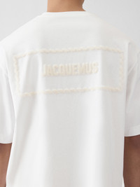 Flocked logo t-shirt - Wide cut - Round ribbed collar - Short sleeves - Flocked JACQUEMUS logo on back 100% Cotton Made in Portugal Ref. TSU00289AJ00169100
