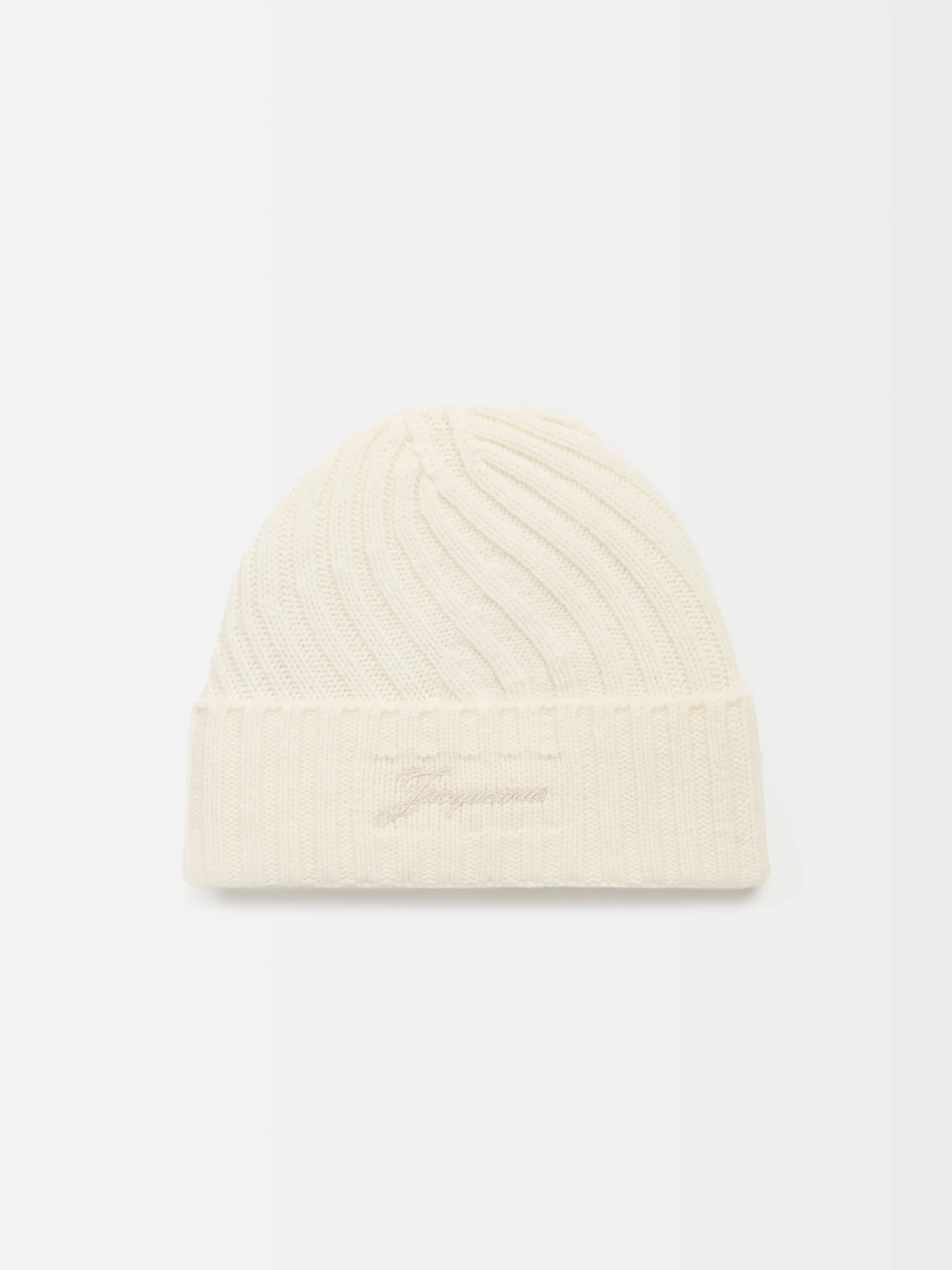 Twisted embroidered beanie - Twisted rib knit hat - Adaptable fit - Vertical rib knit fold - Embroidered logo on the fold 90% Cashemere - 10% Extra Fine Merino Wool Made in Italy Ref. ACU00767AK00287110