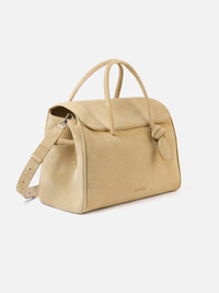 Soft shopper bag - Soft shopper bag in soft suede - Magnetic flap closure - Two top handles - Adjustable and removable cross-body strap - Tied bow detail - Large interior patch pocket - 16.54 × 15.35 × 7.68 in - Handle height: 7.87 in Each leather is unique and has been carefully selected by our team. To maintain the original condition of this item, we recommend to avoid direct and over-exposure to light and contact with cosmetics, water or heat. We advise to store this item into the dust bag in a dry place. 100% Calf leather Made in Italy Ref. BAU00434AC09A04150