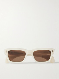 Jacques Marie Mage's limited-edition 'Ashcroft' sunglasses take cues from '90s styles. They're handcrafted from durable acetate with brown lenses and have thick rectangular frames fitted with the brand's signature 'arrowhead' pins. Details & Care - Ivory acetate - Designer colour: Lotus - Come with a case - 100% UV protection