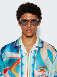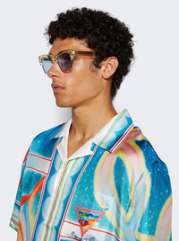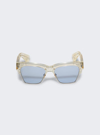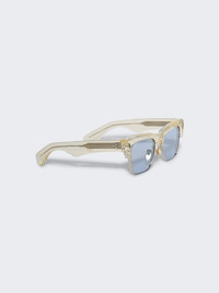 Details - Mid-century classic combo sunglasses with a medium fit. - Handcrafted sleek titanium lens rim and clear crystal cured acetate monobrow and temples. - Beta titanium and acetate frame - Blue lenses with anti-reflective treatment - Signature arrowhead front pin - 100% UV protection - Temple length: 145mm; Frame Width: 146mm; Lens width: 55mm; Lens height: 41mm; Bridge: 19mm Vendor Color Code: Brand Style: J-ESN-UB-T1014Q Designer/Brand: JACQUES MARIE MAGE