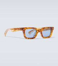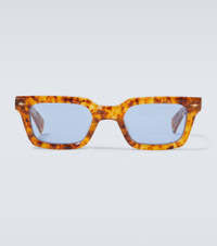 Drawing inspiration from an eclectic mix of art movements, Jacques Marie Mage crafts eyewear that serve as collectible objet d'arts. The Casablanca rectangular sunglasses feature a tortoiseshell frame with light blue hued lenses. Product Details - Frame material: acetate - Frame color: light brown - Lens filter category 2 - Lens color: light blue - Made in Japan - Includes: cleaning cloth, case - The color of the case may vary - Item number: P01082580 Size & Fit - Lens width: 49mm-1.95" - Bridge size: 23mm-0.9" - Earpiece length: 145mm-5.7"