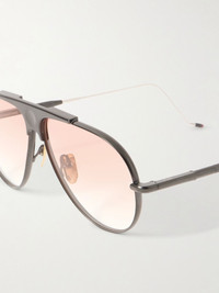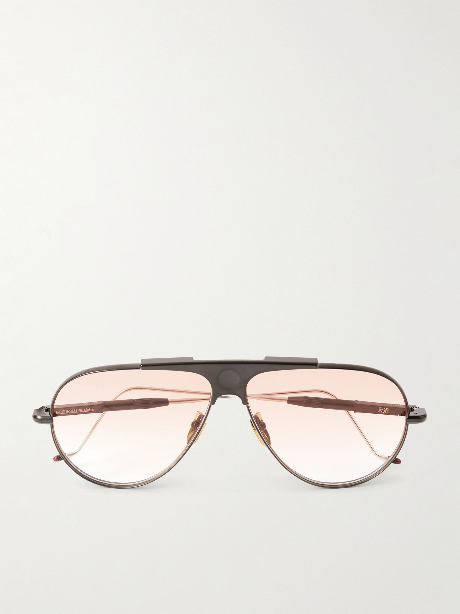 Jacques Marie Mage pays homage to influential Japanese artists with the ‘Kyosho’ series. Limited to a batch of 500, these 'Daido' aviator-style frames are made from black beta titanium and have a circular dent at the wide bridge. Art Deco-inspired details and extendable temples with epoxy tips complete the design. Details & Care - Black and silver-tone beta titanium - Come with a case - 100% UV protection