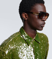 Jacques Marie Mage’s designs are crafted from high-quality cellulose acetate, a plant-based material that’s durable and hypoallergenic. The Fugue sunglasses are made to a square aviator silhouette. Product Details - Frame material: acetate - Frame color: brown - Lens filter category 2 - Lens color: yellow - Handmade in Japan - Includes: case and presentation box, cleaning cloth - The color of the case may vary - Item number: P01065403 Size & Fit - Lens width: 54mm-2.15" - Bridge size: 15mm-0.6" - Earpiece length: 145mm-5.7"