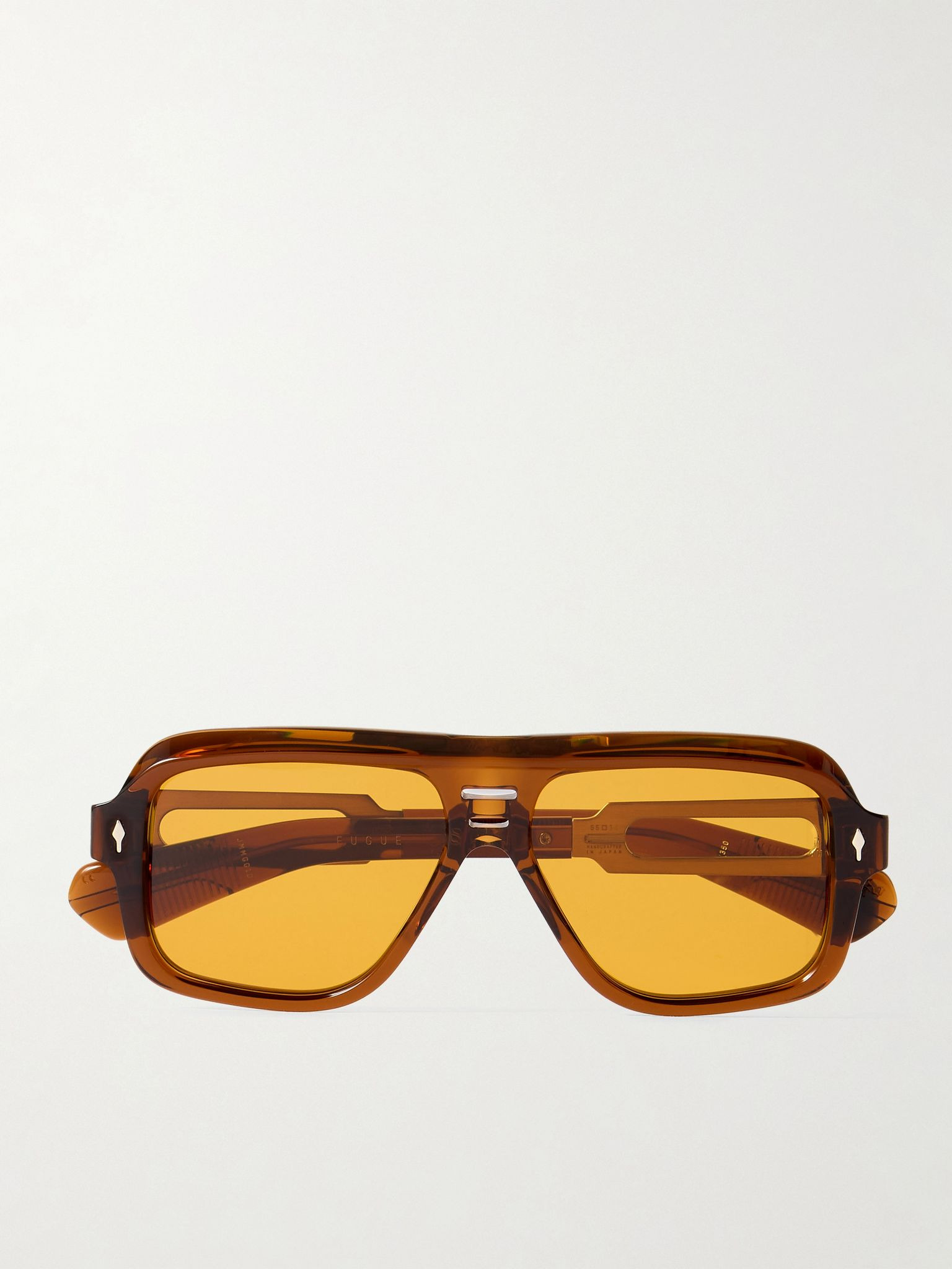 Jacques Marie Mage's 'Fugue' sunglasses embody an "ecstasy of genius" – their design takes inspiration from classical pianist Glenn Gould. Handcrafted in Japan from acetate, they have aviator-style frames with a double bridge and cutout arms made from silver-tone beta titanium. Details & Care - Brown acetate, silver-tone beta titanium - Designer colour: Hickory - Come with a case - 100% UV protection - Limited to 350 pieces