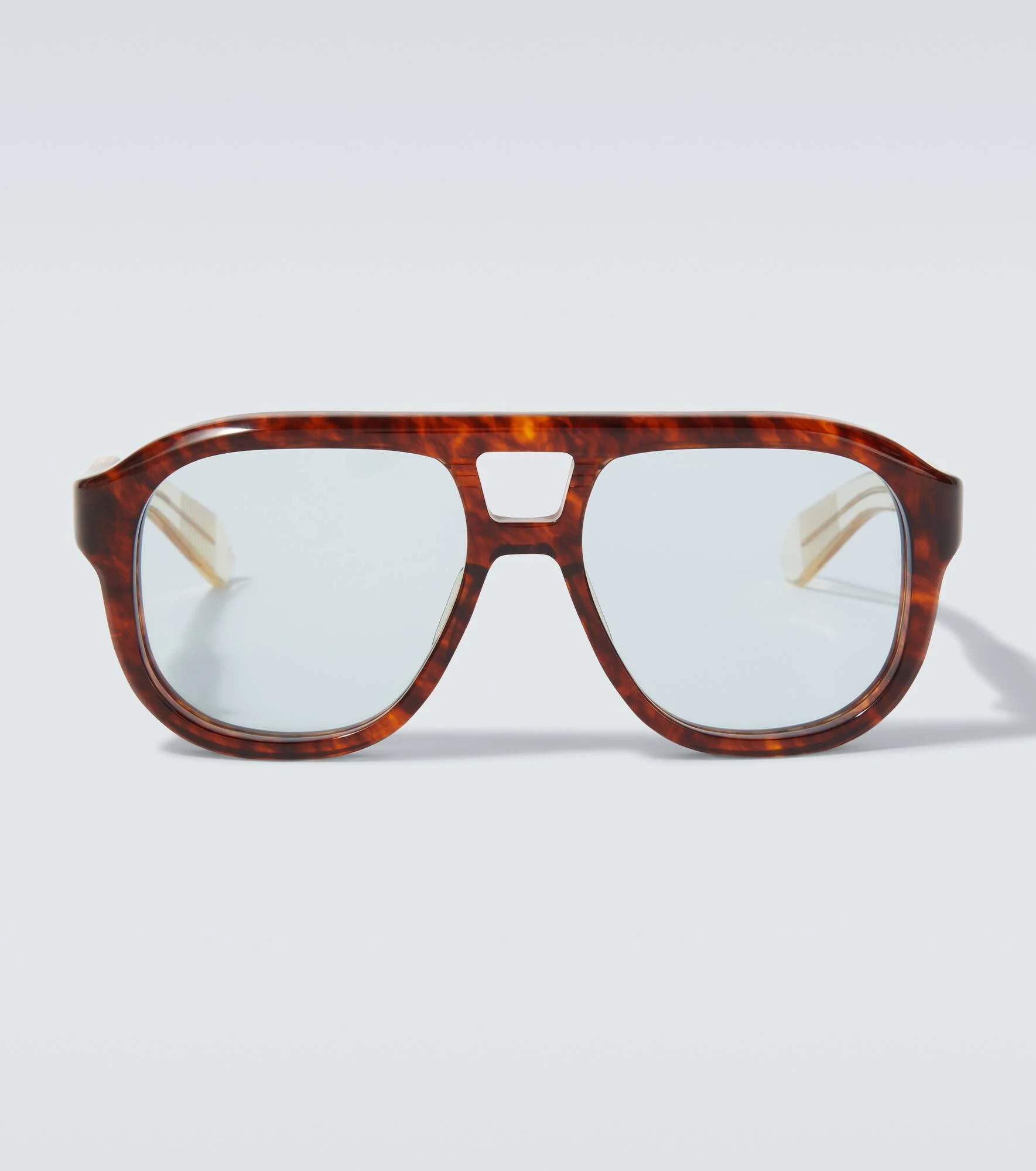 Drawing inspiration from an eclectic mix of art movements, Jacques Marie Mage crafts eyewear that serve as collectible objet d'arts. The Jasper aviator sunglasses feature oversized tortoiseshell frames and light blue-hued lenses. Product Details - Frame material: acetate - Frame color: brown, light brown - Lens filter category 1 - Lens color: light blue - Made in Japan - Includes: case and presentation box, cleaning cloth - The color of the case may vary - Item number: P01087886 Size & Fit - Lens width: 55mm-2.15" - Bridge size: 17mm-0.65" - Earpiece length: 140mm-5.5"