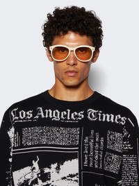 Details - Early ‘80s inspired sunglasses with a softly contoured rectangular lens shape, re-imagined in the sun-faded matte pastels of the Suede Collection. - Signature arrowhead front pins - New ‘Vauxhall’ wirecores with dramatic hairline details - Cured cellulose acetate frames - Custom double laminated acetate temples - Precious metal hardware and yellow lenses with anti-reflective treatment - Tension-secured custom 5 barrel hairline hinge - 100% UV protection - Temple Length: 147mm - Frame Total Width: 144mm - Lens Width: 56mm - Lens Height: 48mm - Bridge: 18mm Vendor Color Code: Brand Style: J-ESN-KAY-S1014R-OS Designer/Brand: JACQUES MARIE MAGE