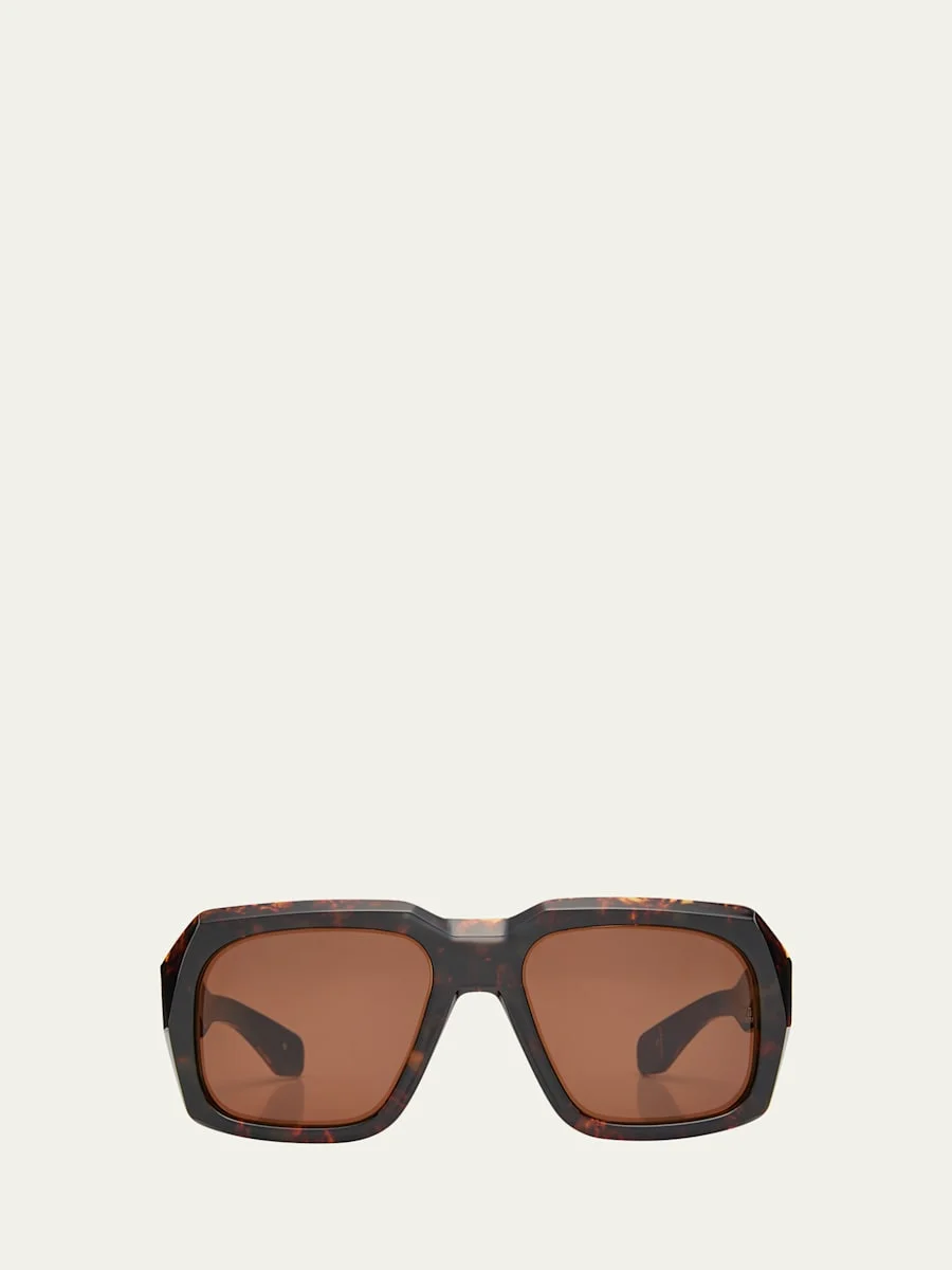 Jacques Marie Mage "Thundercloud" square sunglasses from the Last Frontier collection Eye/bridge/temple (in mm): 5225147 Solidcolor lenses Fullrim frames Arrowhead front pins Saddle nose bridge Goldtone filigree corewire; turquoise inlay Curved temple tips Acetate 100% UVA/UVB protection Made in USA