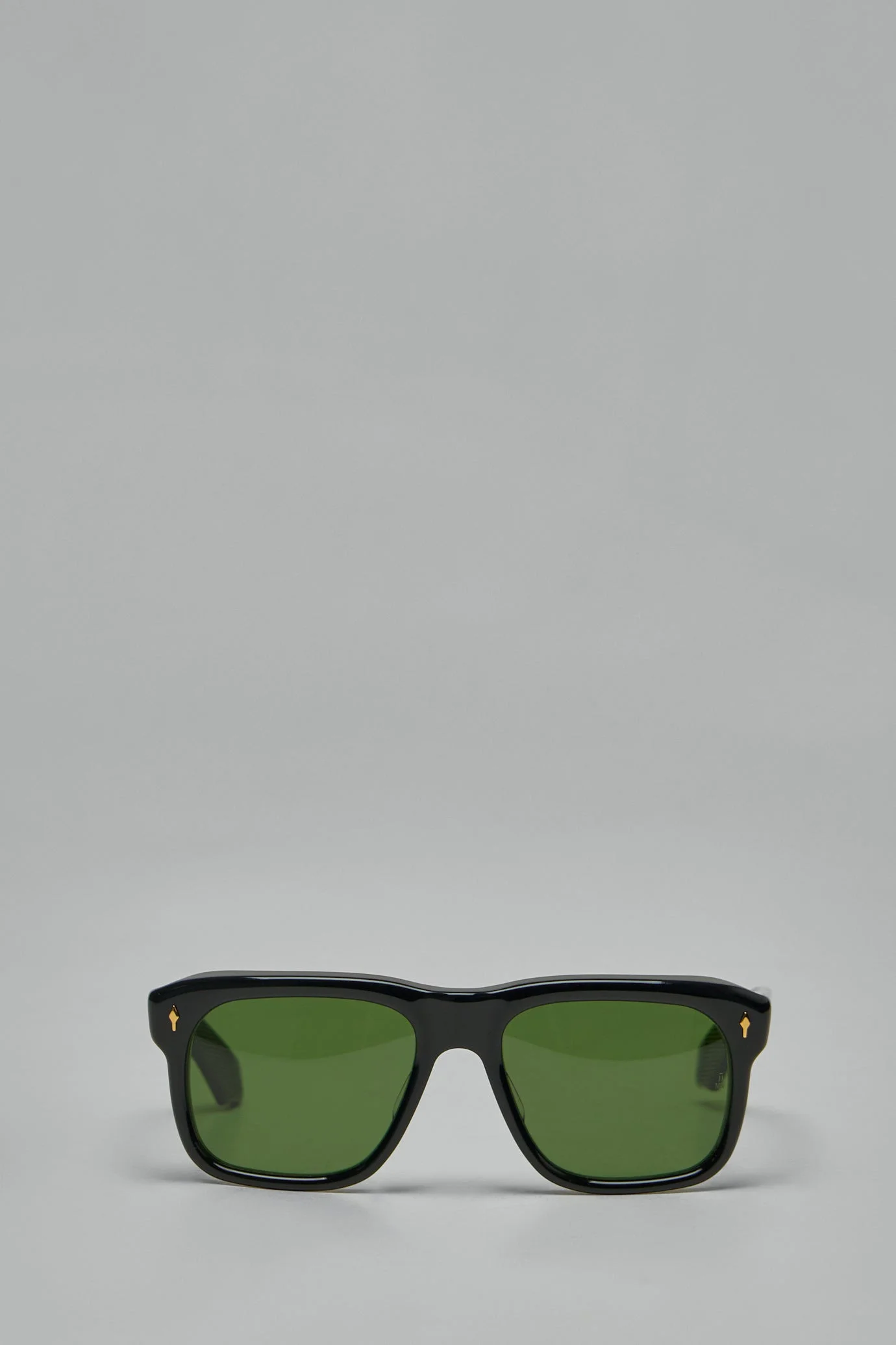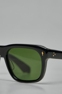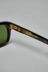Sunglasses featuring a sleek black frame with green tinted lenses, accented by subtle gold detailing near the temples. Materials: 100% Titanium, 100% Acetate Color: dun SKU: 154376 Brand style: YVES