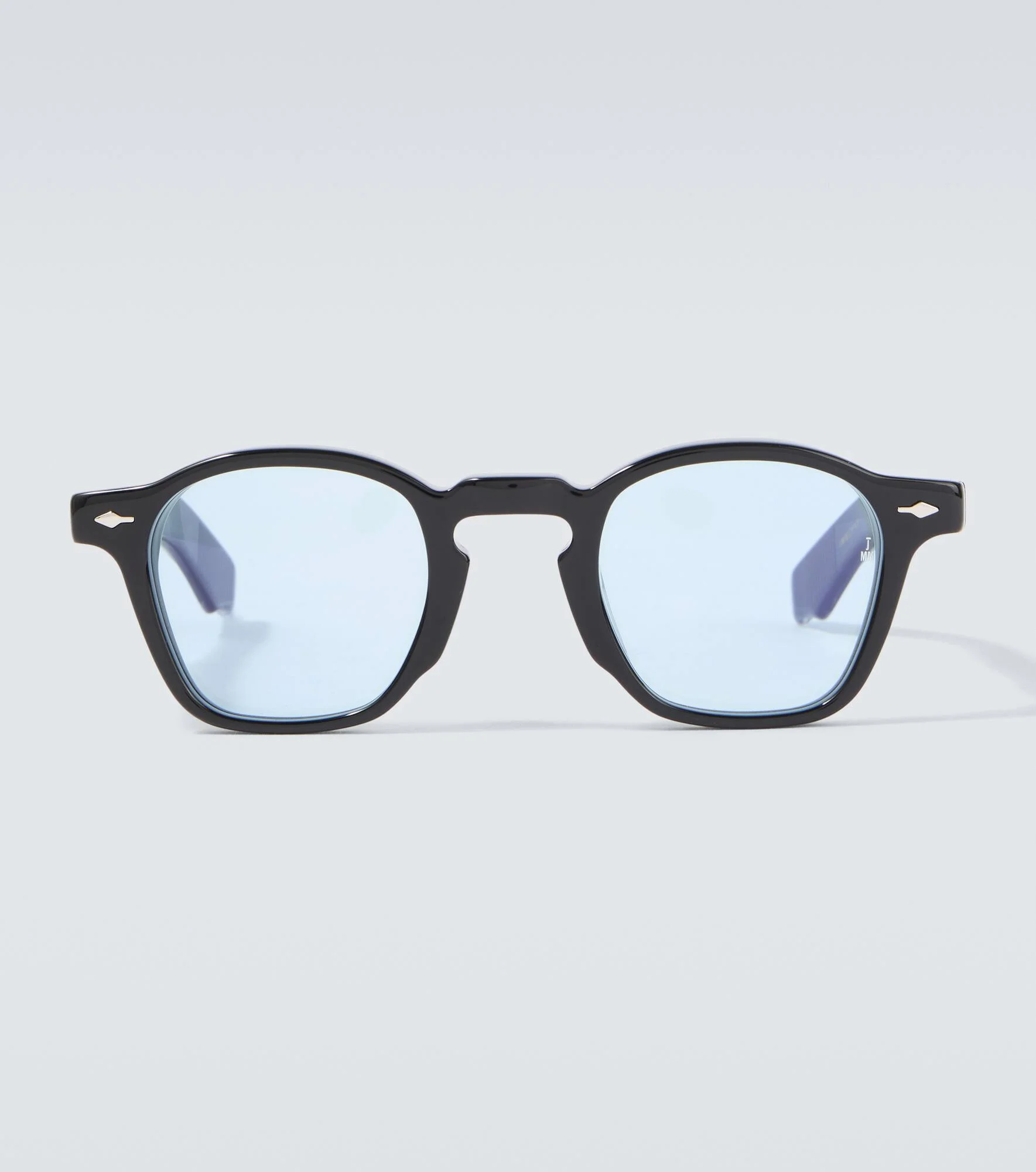 Drawing inspiration from an eclectic mix of art movements, Jacques Marie Mage crafts eyewear that serve as collectible objet d'arts. A timeless style, the Zephirin sunglasses boast square frames in laminated acetate and blue-hued lenses. Product Details - Frame material: acetate - Frame color: black - Lens filter category 1 - Color: black - Lens color: blue - Handmade in Japan - Includes: case, cleaning cloth - The color of the case may vary - Designer color name: Obscure - Item number: P01171862 Size & Fit - Lens width: 44mm-1.75" - Bridge size: 25mm-1" - Earpiece length: 140mm-5.5"