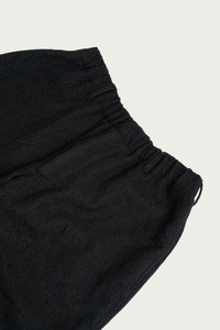 The Carry On Pant is a relaxed and unfussy easy pant cut from a dense and supple midweight Japanese piece dyed wool twill. The fabric is woven and then carefully combed to create added loft, giving the pant a warm feel and a richly textured hand. An elasticated waistband with a cotton drawstring makes everyday wear effortless, while a functional Waldes zip fly and belt loops open the door for plenty of styling options. Capacious side slash pockets and rear welt pockets keep the silhouette practical and adaptable. - 100% wool outer - 100% Bemberg lining - Japanese piece dyed wool twill - Elasticated waistband with cotton drawstring - Waldes zip fly - Side slash pockets and rear welt pockets - Made in Vancouver
