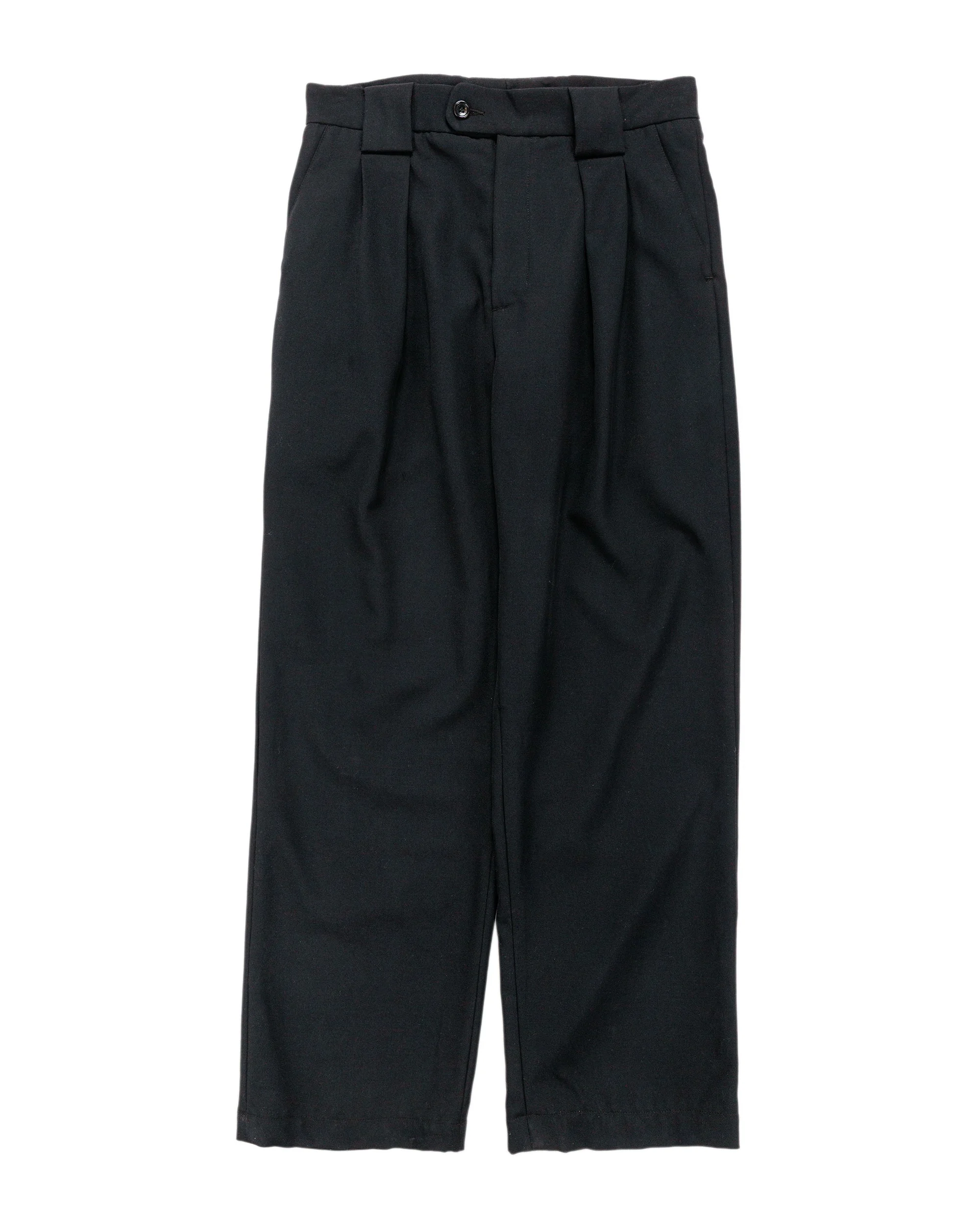 A roomy pleated trouser with just the right amount of structure. Cut from a dry, crisp mid-weight wool gabardine sourced from a legendary mill in Japan’s Chūbu region. A bold front box pleat meets an oversized belt loop for a silhouette that’s equal parts playful and polished. DETAILS - Japanese wool gabardine - Front box pleats meeting with wide belt loops - Extended tab button waist closure - Front slash pockets - Rear welt pockets - 100% wool, 100% Bemberg lining - Made in Canada - Model is 6'1” (186cm), 160lbs (73kg) and wearing III