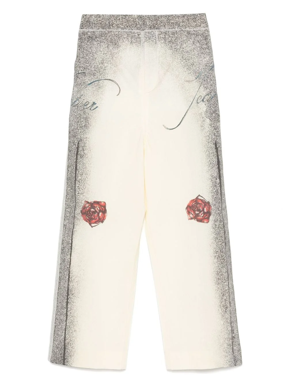 multi-tattoo trousers Highlights - Light beige - Hook and zip fly fastening - Belt loops - Two side slash pockets - Two rear welt pockets Made in Italy Composition Outer: Cotton 54%, Polyamide 40%, Elastane 6% Lining: Cotton 100% SIZE & FIT Model measurements Height 5 ft 10 in(1.78 m) Bust/Chest 33.46 in(85 cm) Hips 36.22 in(92 cm) Waist 23.22 in(59 cm) FittingInformation This piece is unisex and is designed with a wide-leg, whether you usually select women's or men's sizes Made from a midweight stretch fabric, this piece offers elasticity and flexibility when worn
