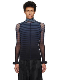 Stretch nylon tulle and jersey turtleneck. Striped pattern throughout. · Layered construction · Padded tubular cuffs · Central seam at front and back · Gusset at ragan sleeves · Locker loop at back Supplier color: Black/Navy/Light blue Body 1: 100% polyamide. Body 2: 80% polyamide, 20% elastane. Lining: 100% polyurethane. Made in Italy 251808M205000