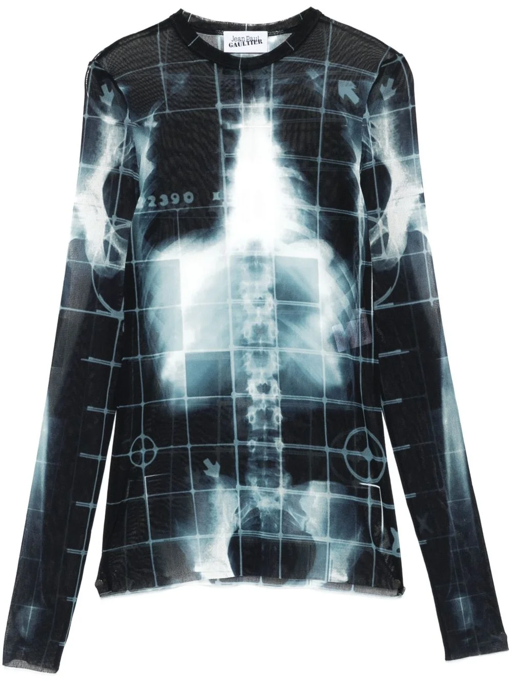 Squeletor top Highlights - Black - Semi-sheer construction - Round neck - Long sleeves - When buying this unisex item, keep in mind that it is graded in standard men's sizing. Made in Italy Composition Polyamide 100% SIZE & FIT Model measurements Height 5 ft 9 in(1.76 m) Bust/Chest 31.1 in(79 cm) Hips 36.61 in(93 cm) Waist 24.8 in(63 cm) Measurement SLEEVE LENGTH 26.37 in(67 cm) LENGTH 24.4 in(62 cm) BUST 25.19 in(64 cm) Shoulder Width 11.81 in(30 cm) FittingInformation This unisex piece is designed for a close fit whether you usually select women's or men's sizes Made from a lightweight non-stretch fabric, this piece offers minimal elasticity when worn Washing instructions Hand Wash