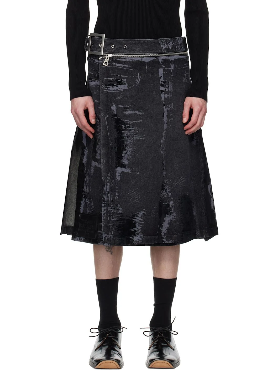 flock-detail pleated skirt Highlights Imported Composition Calf Leather 100%, Cotton 100%
