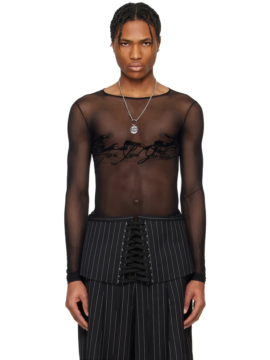 Sheer stretch nylon tulle T-shirt. · Crewneck · Logo graphic flocked at chest · Locker loop at back collar Supplier color: Black 94% polyamide, 6% elastane. Made in Portugal 251042M213004