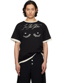 Oversized stretch cotton jersey T-shirt. · Twisted detailing at crewneck, hem, and cuffs · Logo graphic printed at chest and back · Graphics and text printed at chest · Locker loop at back collar · Full stretch lyocell jersey lining Supplier color: Black Body 1: 96% lyocell, 4% elastane. Body 2: 96% cotton, 4% elastane. Made in Portugal 251042M213003