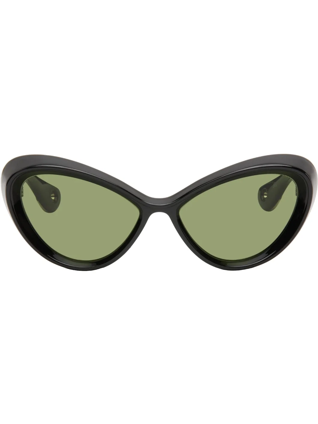 Cat-eye acetate-frame sunglasses. · Handcrafted · Green lenses, category 2 · Integrated nose pads · Logo plaque at temples · Eyewear chain-compatible · Includes pouch Supplier color: Black Acetate. Made in Italy 252808M134007
