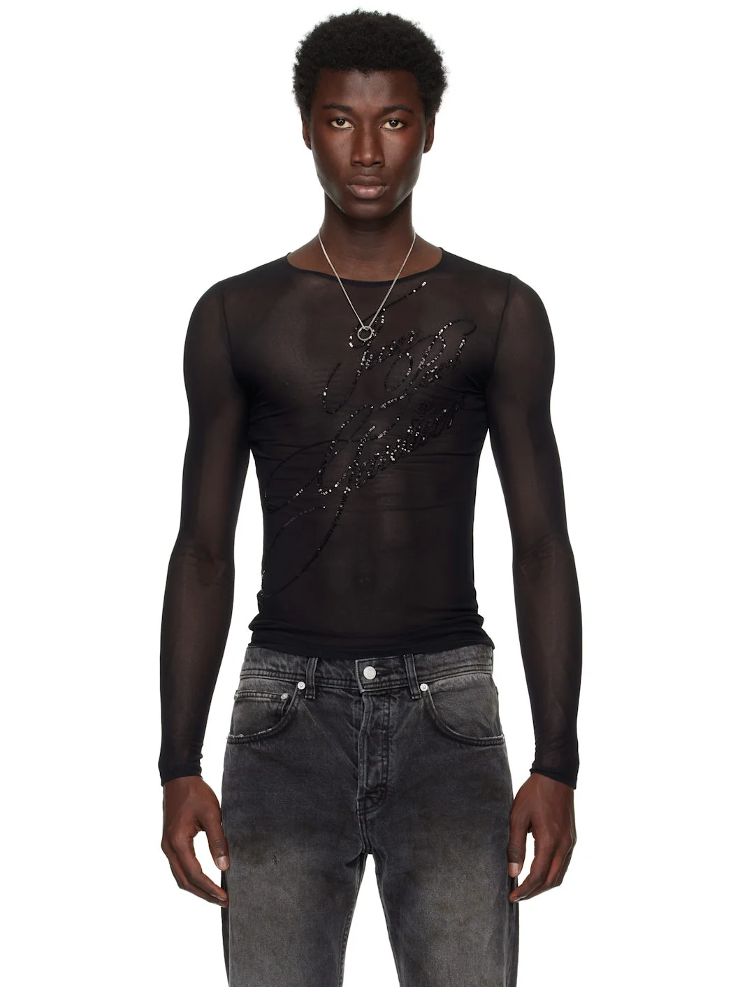 Sheer stretch nylon mesh top. · Crewneck · Sequinned logo at front · Locker loop at back collar Supplier color: Black 94% polyamide, 6% elastane. Made in Portugal 252808M213002
