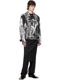 Oversized non-stretch denim jacket. Trompe l'oeil graphic printed throughout. · Notched lapel · Offset zip closure · Zip pockets · Flap coin pocket at front · Pin-buckle belt at detachable zip hem · Epaulets · Zip vent at cuffs · Logo printed at cuff · Locker loop at back collar and back hem · Logo-engraved silver-tone hardware Supplier color: Black/White Body: 100% cotton. Lining: 50% viscose, 50% polyester. Made in Italy 251808M180000