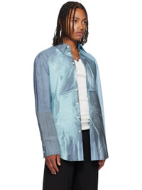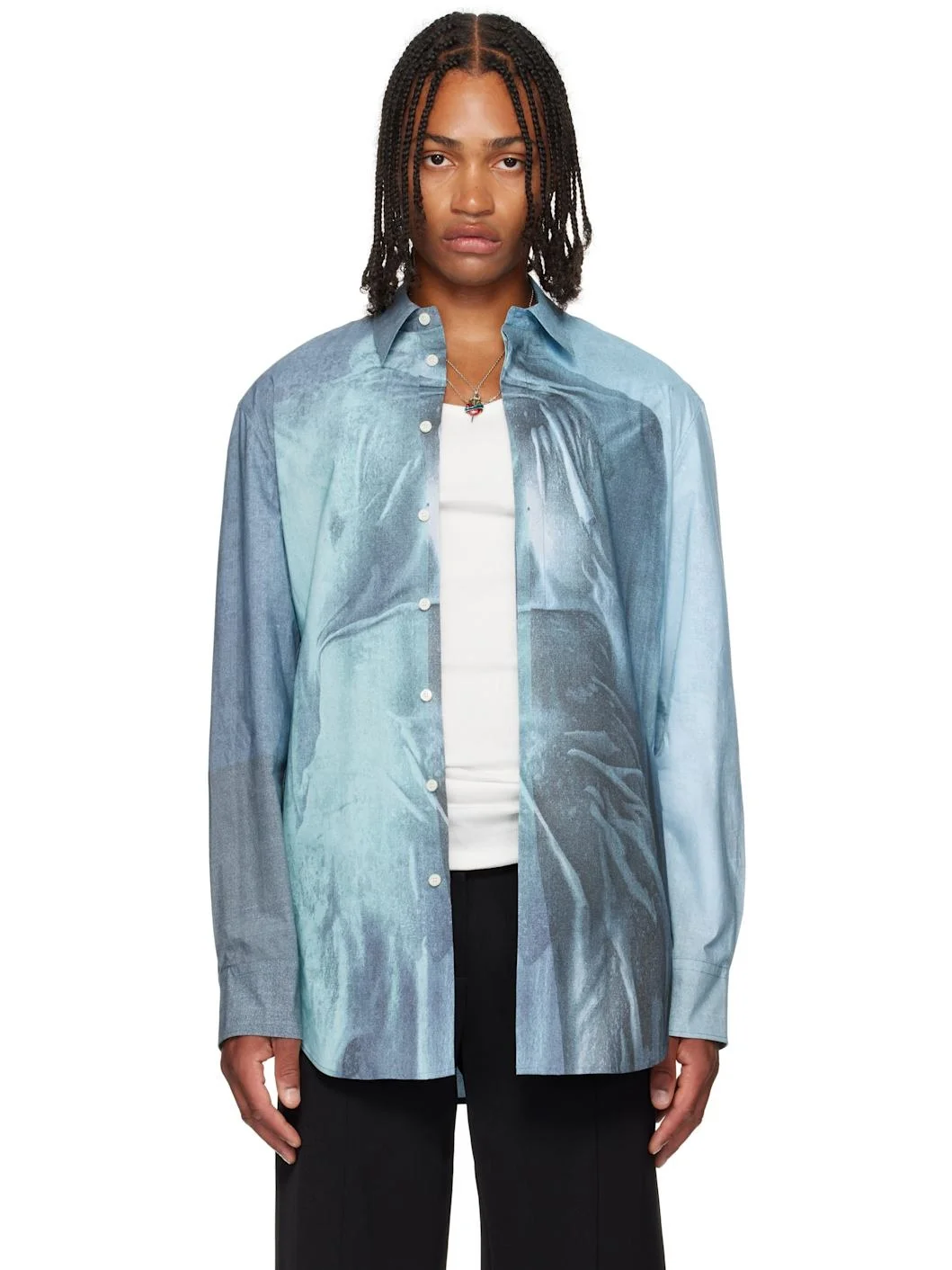 Stretch cotton poplin shirt. · Trompe l'oeil graphic printed throughout · Spread collar · Button closure · Shirttail hem · Buttoned barrel cuffs · Locker loop at back · Mother-of-pearl hardware Supplier color: Indigo 97% cotton, 3% elastane. Made in Portugal 252808M192000