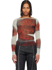 Semi-sheer nylon tulle T-shirt. · Graphic pattern printed throughout · Boatneck · Locker loop at back collar Supplier color: Red 100% polyamide. Made in Italy 252808M213044