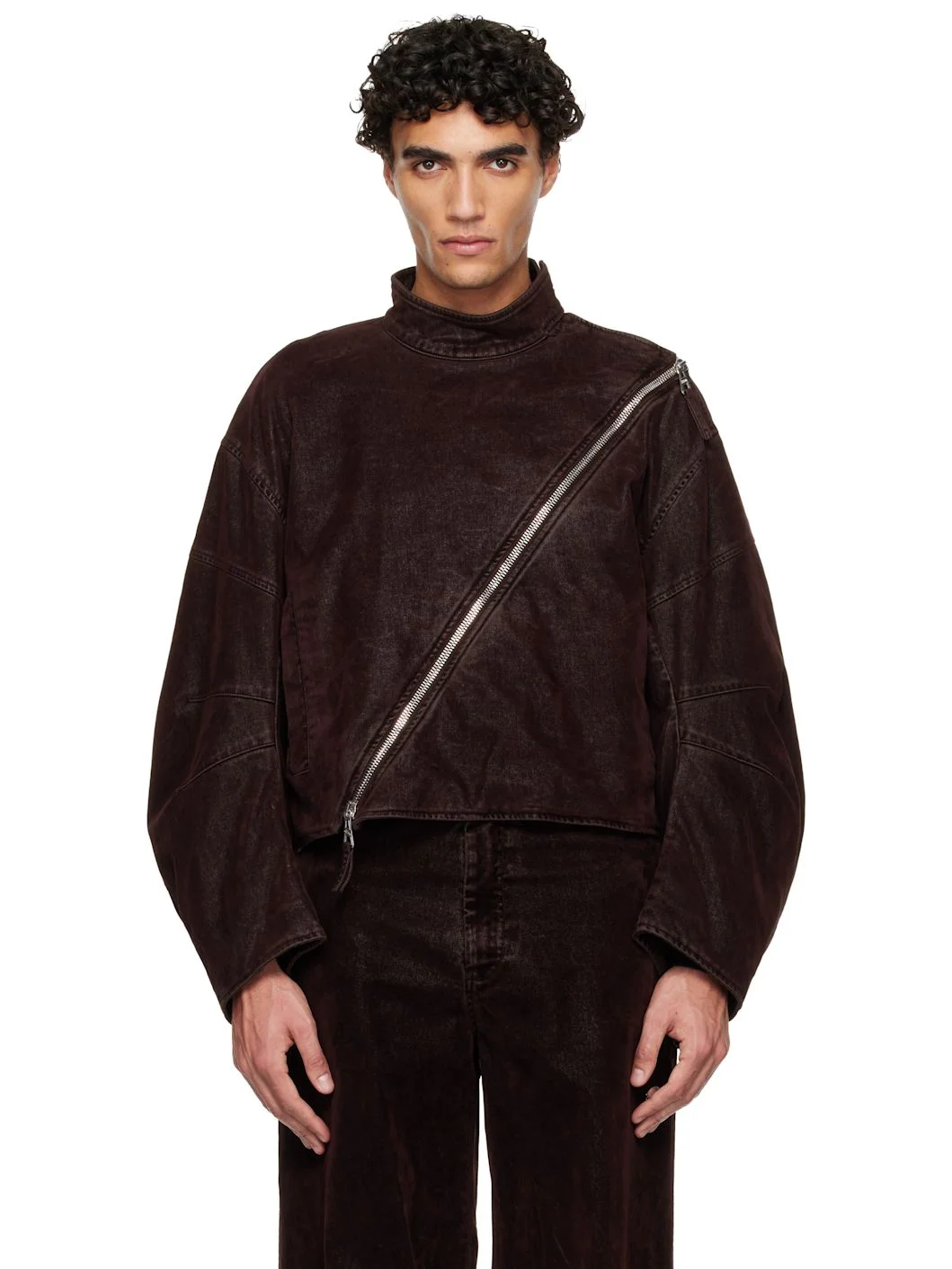 Flocked stretch cotton-blend twill jacket. · Logo plaque at stand collar · Offset two-way zip closure · Welt pockets at front · Zip vent at cuffs · Press-stud tab at back waistband · Full quilted twill lining Supplier color: Chocolat Body: 75% cotton, 22% viscose, 3% elastane. Lining: 100% cotton. Made in Italy 252808M180002