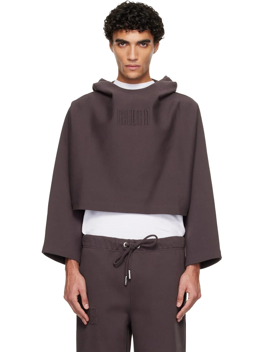 French terry hoodie. · Stand collar · Logo embossed at chest · Cropped hem · Dolman sleeves Supplier color: Chocolat 100% cotton. Made in Bulgaria 252808M202005