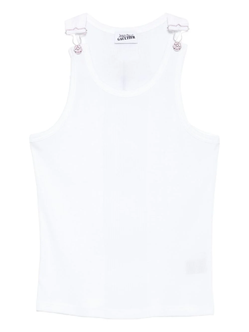 clasp-detail ribbed vest Highlights - White - Ribbed texture - Round neck - Sleeveless - Clasp embellishments - Cotton Imported Composition Cotton 100% Washing instructions Machine Wash
