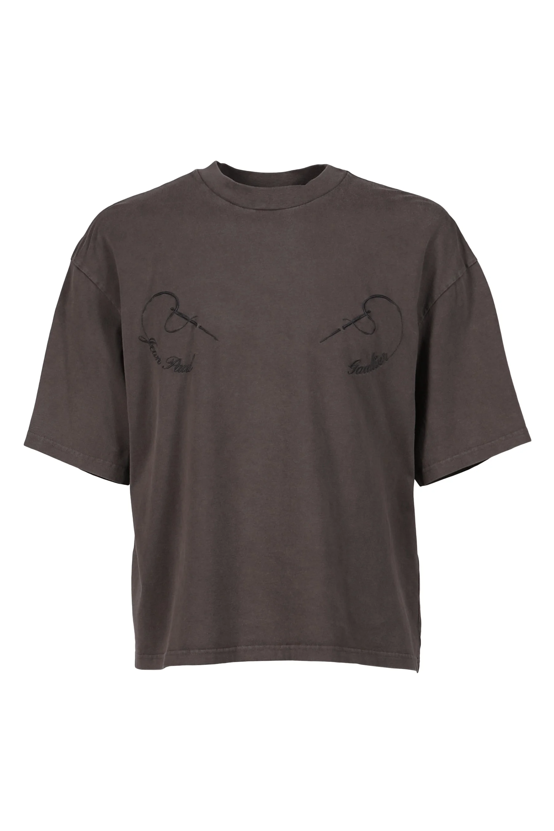 COTTON OVERSIZED TEE EMBROIDERED "NEEDLS JEAN PAUL GAULTIER" / DARKGRY